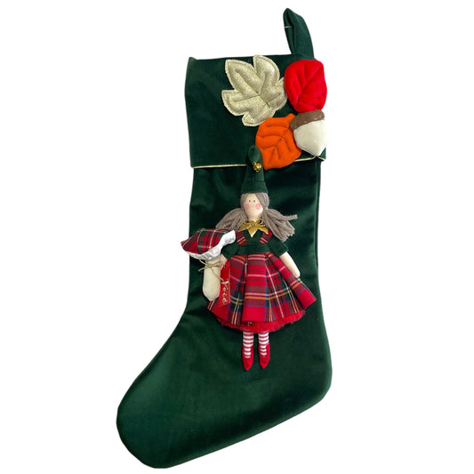 Calza epifania in velluto con bambola Lilibet in tartan 30cm
