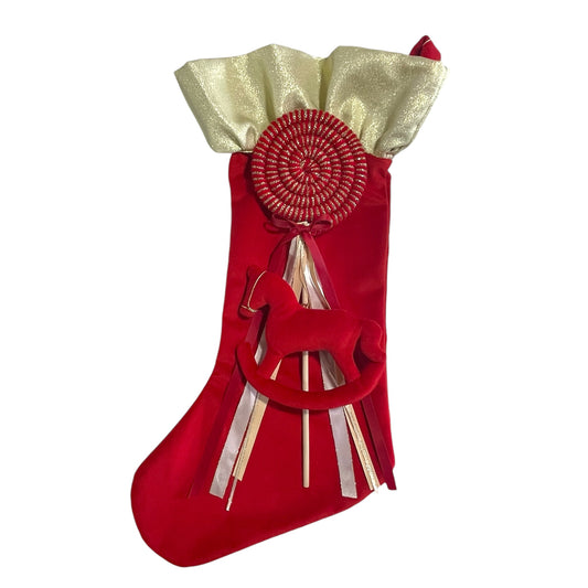 Calza epifania in velluto con cavallo a dondolo e lollypop