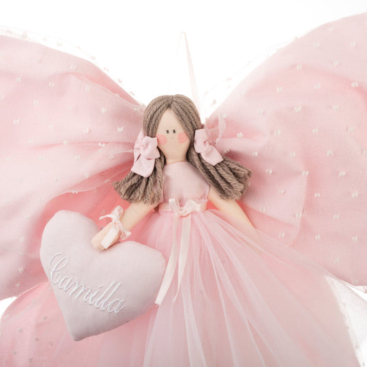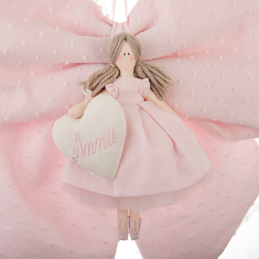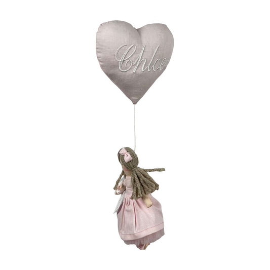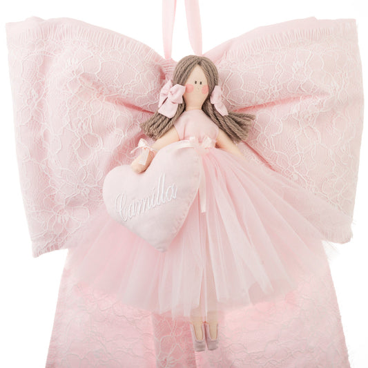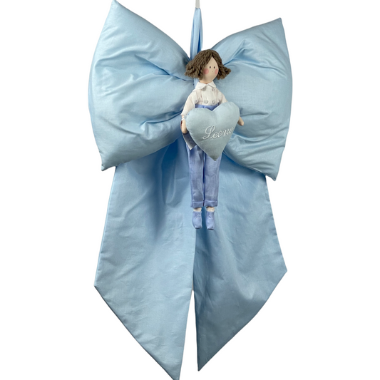 Fiocco Nascita in cotone rivestito con organza con bambola e cuore ricamato