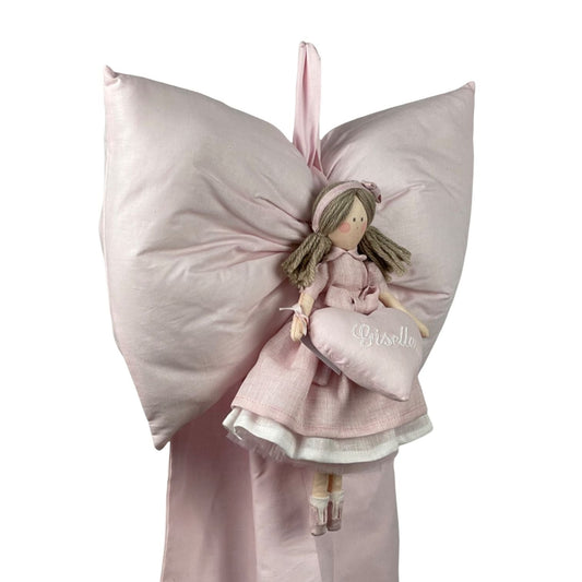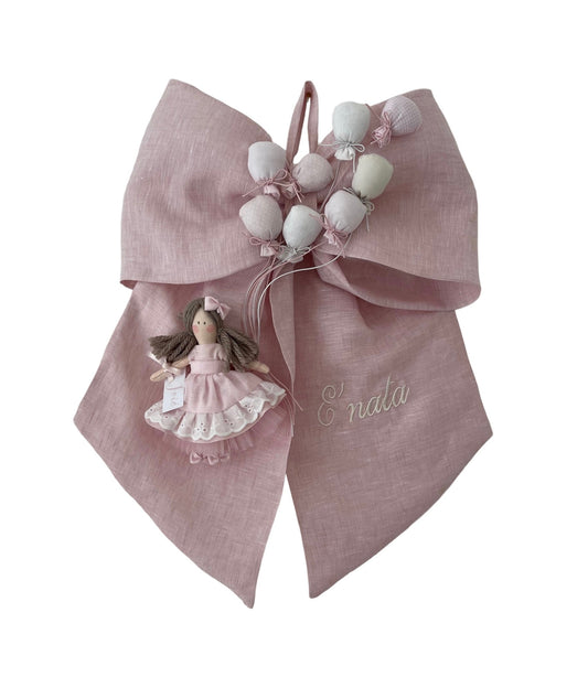 Fiocco Nascita in cotone rivestito con organza e bambola