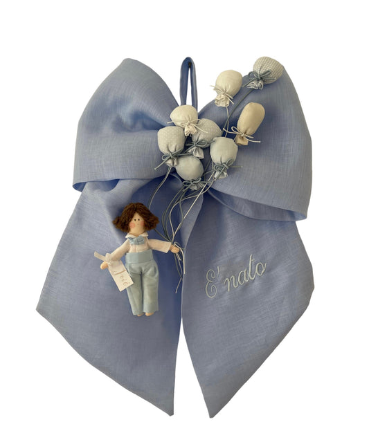 Fiocco Nascita con bambola e nuvoletta personalizzabile
