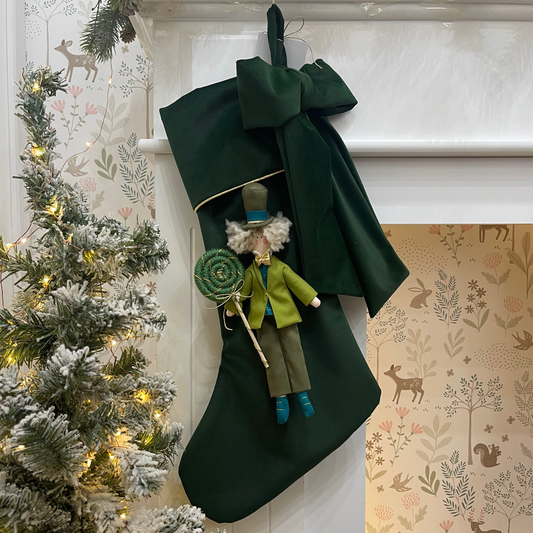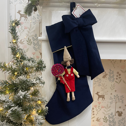 Calza epifania in velluto con bambola Pinocchio marionetta