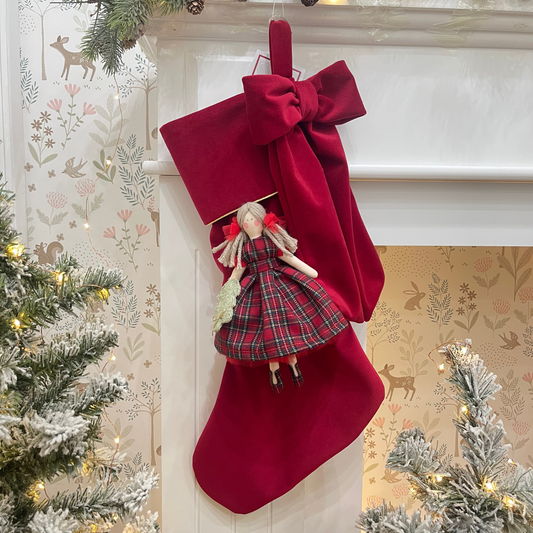 Calza epifania in velluto Bordeaux con bambola Lilibet 30cm