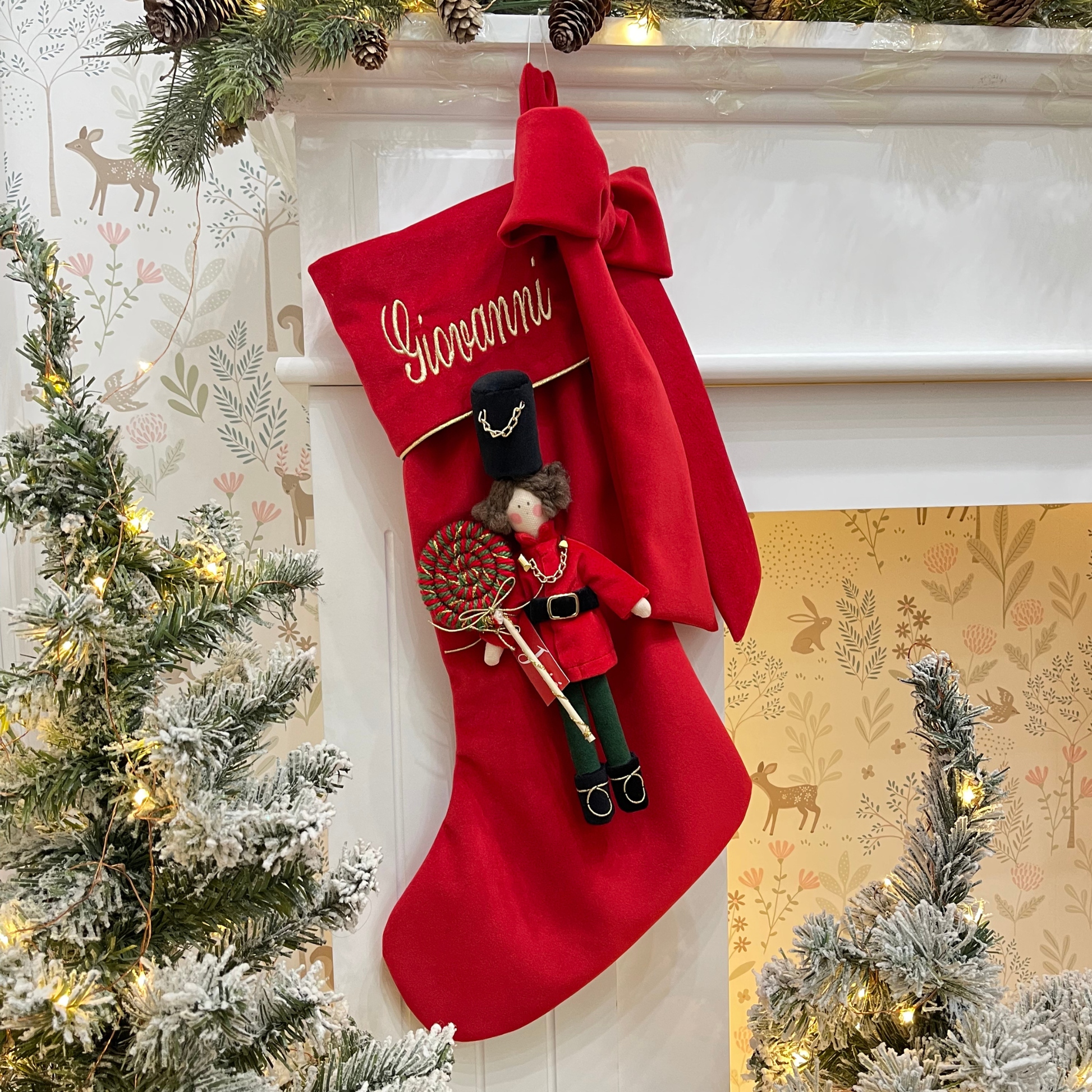 Calza epifania in velluto con bambola Schiaccianoci e lollipop