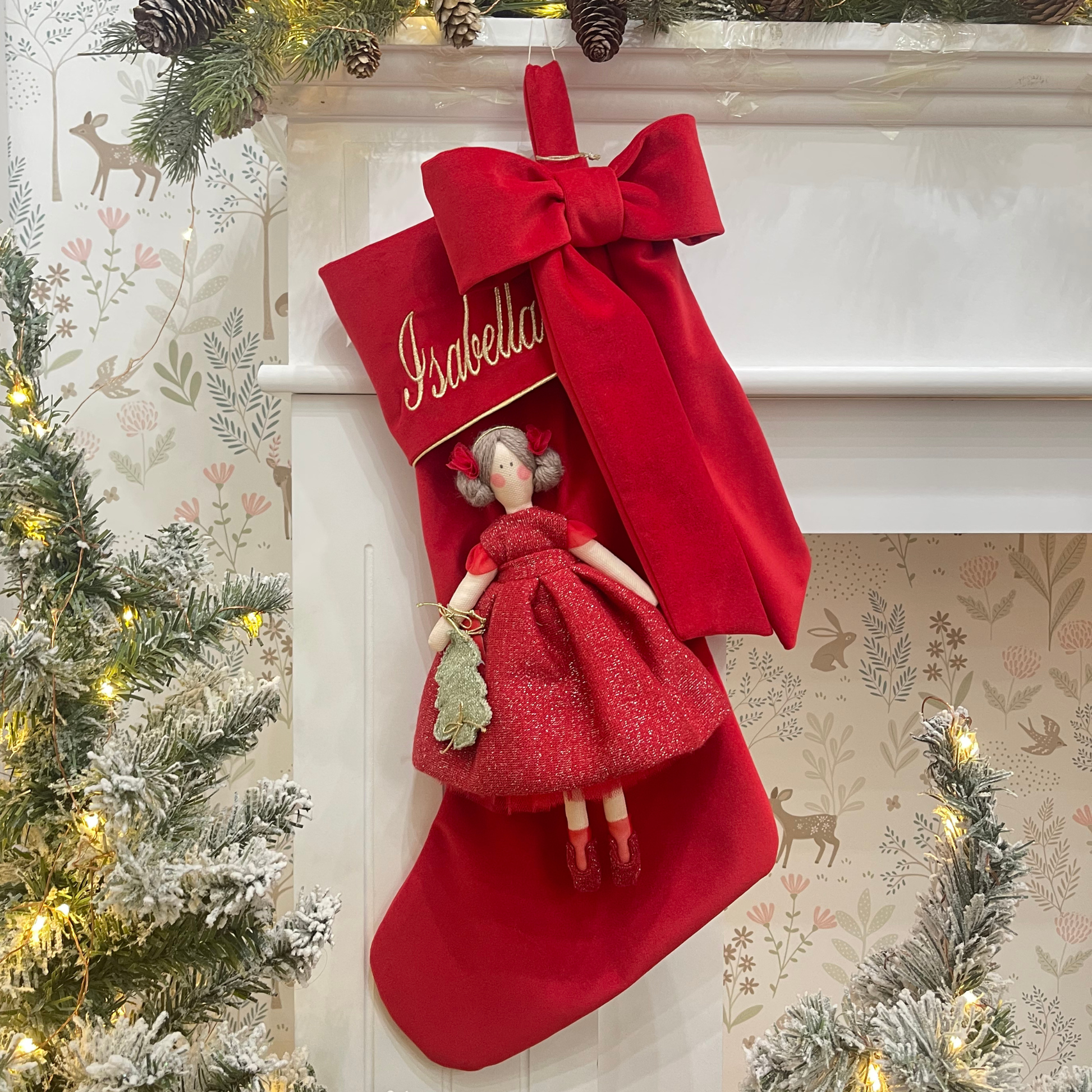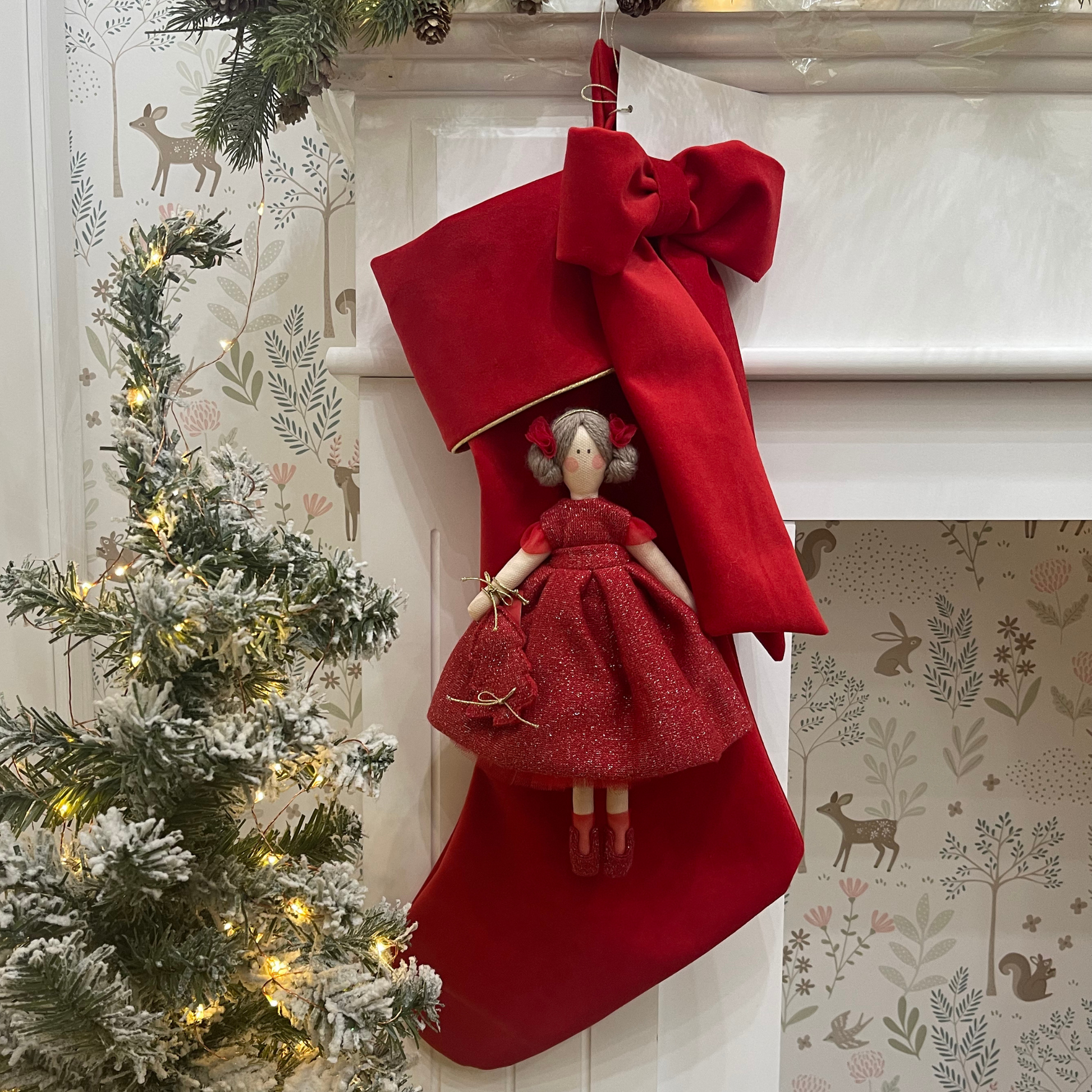 Calza epifania in velluto con bambola Lilibet in lana lurex